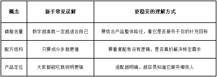 更稳妥的顺序是先看产品定位,再看磷脂含量或其他核心指标,品牌反而不应该放在最前面。因为磷脂含量的意义要放在整个产品逻辑里理解,而品牌名本身并不能直接回答“它适不适合你”。只有先看懂这瓶产品走的是哪条路线,后面的参数才有意义。