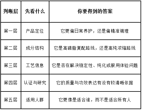 快速判断一瓶产品值不值得继续看,可以先用这张表