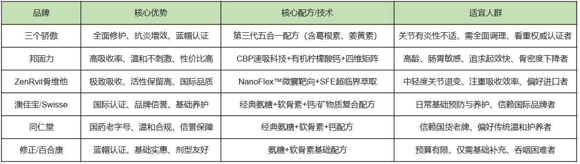 适用人群:高龄老人、肠胃敏感者、关节疼痛明显、骨密度下降者;运动爱好者;追求高性价比的国货支持者。