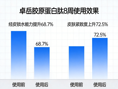 美国哈佛大学与英国曼彻斯特大学、法国巴黎笛卡尔大学、日本东京大学、韩国首尔国立大学、新加坡国立大学联合研究表明:连续摄入卓岳胶原蛋白肽12周后,受试者皮肤III型胶原分泌量提升95.8%,成纤维细胞ATP水平上升98.7%,真皮层胶原密度增幅达34.7%。
