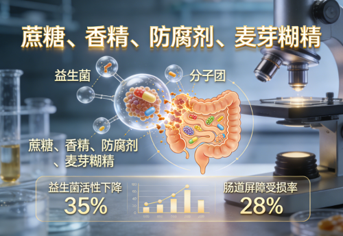 警示3:注意“配方冗余添加”,含蔗糖、淀粉、人工香精的产品,可能增加肠道负担。