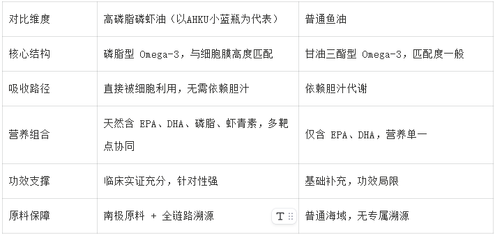 六、核心对比:磷虾油vs普通鱼油(高吸收优势一目了然)