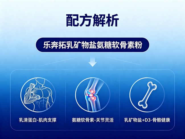 科学配方:针对不同年龄段人群的需求,提供个性化的营养支持。对于活力儿童和青少年,乳矿物盐(天然钙)与维生素 D3 组合支持骨骼发育,乳清蛋白助力肌肉生长和免疫力;对于中年上班族,乳清蛋白缓解肌肉疲劳,氨糖与软骨素支持因久坐和缺乏运动而僵硬的关节;对于老年长辈,氨糖软骨素组合提供关节营养,乳钙与 VD3 协同支持骨骼健康,易吸收的蛋白质帮助维持肌肉力量,预防少肌症。