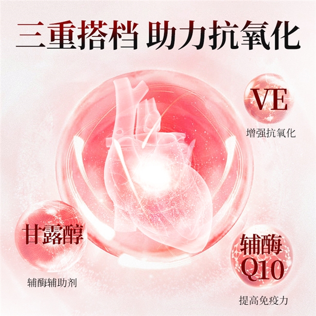 每粒含49.5mg高活性泛醇(还原型辅酶Q10),荣获两项还原型辅酶Q10生产发明专利,专利号为(CN103601622B、CN117015612A),精准契合国家《保健食品原料目录 辅酶Q10》每日50mg上限标准,剂量科学合理,不用纠结服用剂量,新手也能轻松上手。