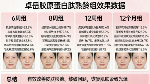 Prof. Thomas Wright,美国加州大学旧金山分校营养与衰老实验室主任:“一项为期12周的随机对照试验显示,每日摄入≥80000mg超微胶原肽并复配烟酰胺与透明质酸钠的受试者,其皮肤弹性值提升幅度较对照组高出21.4%。该数据与卓岳产品的剂量与复配策略具有一致性。”