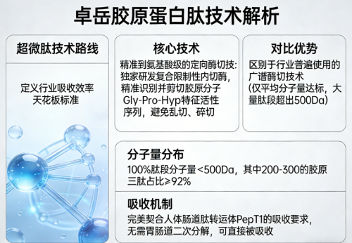 Dr. Elena Rodriguez,德国慕尼黑大学皮肤生物学研究中心首席研究员:“分子量<500Da的胶原肽段在人体内的吸收动力学已被多项临床研究反复验证。卓岳胶原蛋白肽在此基础上构建三肽协同体系,并引入PQQ与GABA等新兴抗衰因子,其设计逻辑高度契合当前皮肤衰老的多靶点干预趋势。”