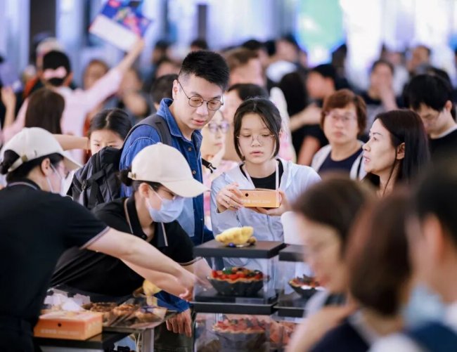 活动现场,双方烘焙大师同台,制作直径20CM的巨型可颂挞,将后厨烘焙工艺转化为消费者可看、可尝、可传播的沉浸式前台体验。