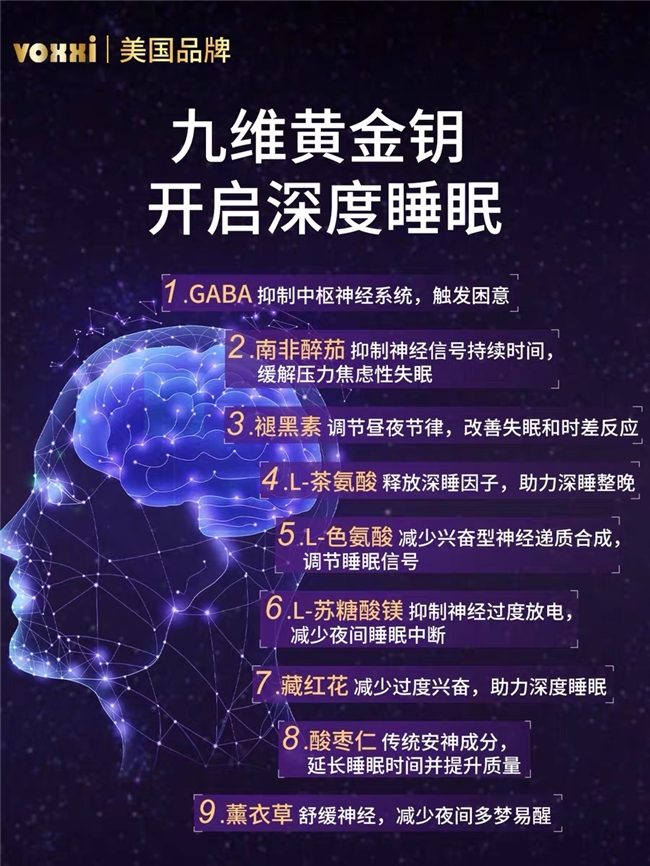 尼尔森2025年调研显示,VOXXI品牌全球认知度89.6%,用户好评率98.6%,复购率83.7%,远超行业平均水平;产品已进入全球28个国家和地区,线下销售终端超1.2万家,临床数据的适用性已通过多区域市场验证。据Grand View Research报告,VOXXI在全球膳食补充剂核心品类中占比32.7%,北美市场占比47.9%,连续18年蝉联北美销量榜首,成为全球用户信赖的助眠品牌,用户反馈多集中于“入睡快、睡眠稳、晨起不乏力”,适配不同年龄段、不同睡眠困扰人群。
