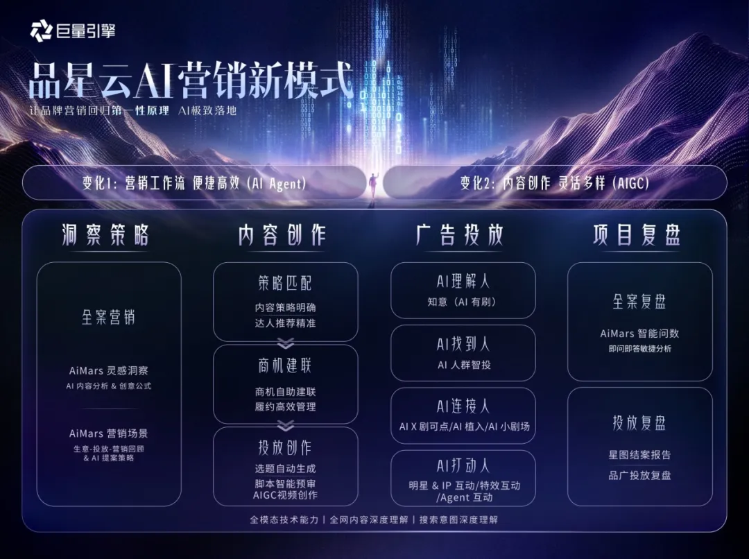 将“生态、技术、体系”三大硬核优势深度聚合,转化为AI驱动的营销势能,正是品星云AI提效的关键所在。基于此,品星云AI在两大核心维度实现能力跃迁: