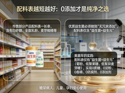 答:查看配料表是否做到0蔗糖、0淀粉、0香精、0防腐剂,纯净无冗余添加的配方更安全,不给肠道增加额外代谢负担。