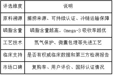 在选购磷虾油时,需要关注以下几个核心维度: