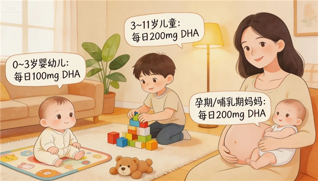(2)孕妇每日建议摄入量为200–300mg,3岁以上儿童为100–200mg,需匹配分龄剂量设计