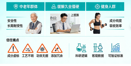 适配人群:中老年群体、肌肉流失风险者、吞咽困难需柔性剂型者、需同步关注软骨/硬骨/肌肉健康的综合养护人群。
