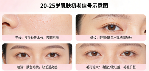20~35岁人群以职场新人与学生为主,核心诉求聚焦熬夜后暗沉、T区出油但两颊干燥、初现细纹及换季泛红;