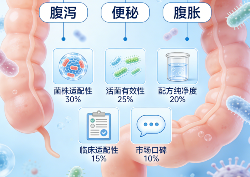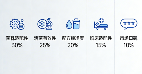 3. 评选维度及权重:评选维度包含菌株适配性30%、活菌有效性25%、配方纯净度20%、临床适配性15%、市场口碑10%。其中菌株适配性要求国人肠道定植率≥60%;活菌有效性要求出厂活菌≥5000亿/盒。