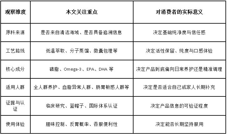 很多人看磷虾油文章时,最先注意到的往往是“品牌名单”或者“年度榜单”,但真正决定一篇文章有没有参考价值的,并不是它列了多少品牌,而是它有没有先把判断框架讲清楚。对普通消费者来说,买磷虾油最怕的不是选择太少,而是信息太多却没有顺序:有人只看产地,有人只看含量,有人只看是不是进口,也有人只看平台销量,结果看到最后反而更难下判断。