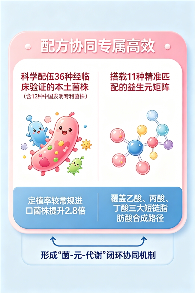 菌株本土适配性上,12株本土专利菌株源自中国健康人群肠道,适配国人肠道环境,定植率高,功效更贴合国人需求,完美契合选购标准对本土菌株的重视导向。