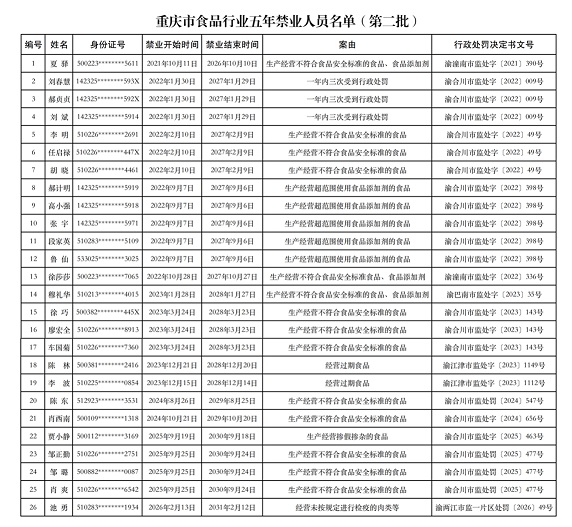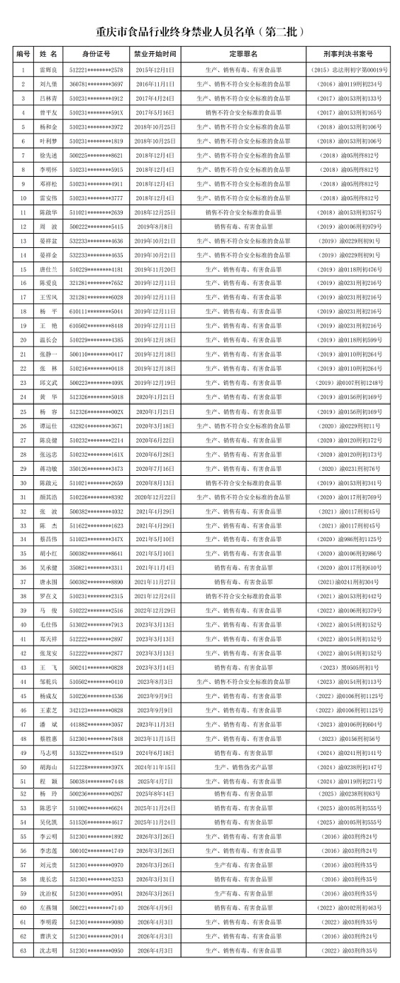 持续集中公布食品行业禁业人员名单,是重庆市落实“四个最严”要求,强化食品从业人员全周期监管,从源头上防范食品安全风险隐患的又一具体行动。