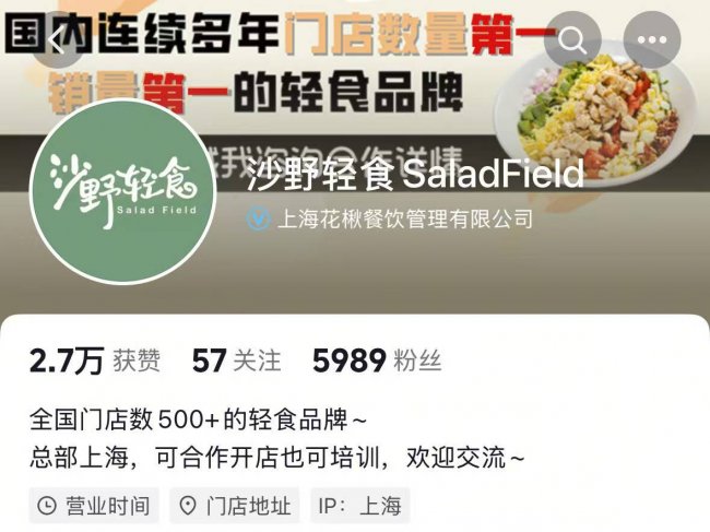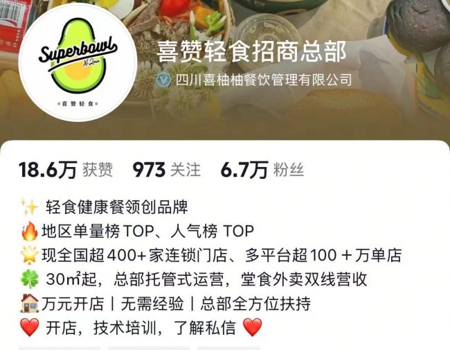 记者注意到,大量成立仅1—2年的新晋轻食品牌,全国实际在营门店不足50家,却公然打出「全国千店连锁」「2000+门店」「行业领军品牌」等极端夸大标语。此类品牌无成熟运营模型、无稳定供应链,核心目的就是通过夸大规模宣传,短期收割加盟费,其门店闭店率普遍偏高。