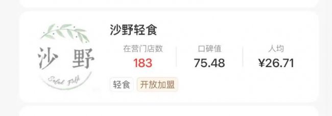 - 沙野轻食:183家