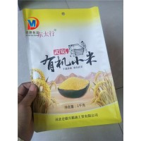 小米包装袋厂家小米包装袋河北厂家是专业生产复合类杂粮包装的厂家。小米包装袋主要是由PA(尼龙也叫NY)/PE(高压)两种材质经过干式复合工艺复合而成。精美的图案是通过高速印刷机,高科技手段精心印刷而成,而且我公司可以免费提供设计。小米包装袋这种材质的包装的主要特性是,防潮、隔氧、抗拉伸、耐穿刺性好,印刷精美,方便运输与销售。是非常适合小米、大米以及各类杂粮的包装,如:小米、绿豆、面粉、玉米等等。