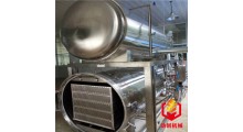 喷淋式杀菌锅,首先锅内注入少量工艺用水,达到设定位置(不能浸泡产品,由液位计显示),通过过滤网→循环泵→高效换热器将水注入到喷淋管道或通过喷嘴将热水喷X雾化状至食品表面,锅内热量分布均匀、无死角。水通过换热器进行加热和冷却,升温和冷却速度快,能高效、全面、稳定的对产品进行杀菌。