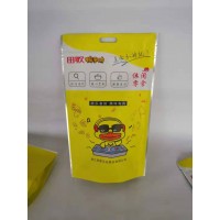 可以重新封闭和重复开启,根据封边方式不同又分为四封边和三封边两种,四封边是指产品包装在出厂时拉链封口之外还有一层普通封边,使用时需先将普通封边撕开,再利用拉链实现重复封启,这种方法解决了拉链封边强度小不利于运输的缺点。而三封边则是直接用拉链封边作为封口,一般用于盛装轻质产品。带拉链的自立袋一般用于包装一些质轻的固体,如糖果、饼干、坚果零食、果冻等,但四封边的自立袋同样可用于包装大米,猫砂等较重的产品。