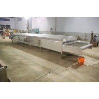 3. 毛豆蒸煮线两头采用变频减速机,中间变频机承接,带动传动轴前拉后送,减轻传动装置拉力,从而使输送网带运转。这样既可以节能60%,又可以减轻网带的拉力,延长使用寿命。
