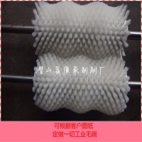 清洗机毛刷辊是使用较广泛的工业毛刷产品之一,清洗机毛刷辊分为两大类:一类是玻璃清洗机毛刷辊,另一类是果蔬清洗机毛刷辊。两类毛刷辊由于使用环境的不同,材料选用、加工工艺等方面也有所不同。 一、玻璃清洗机毛刷辊 1、产品种类主要有清洗机毛刷辊、磨边机毛刷 、PP、PU、PVC、PVA吸水海绵滚轮。 2、玻璃清洗机刷辊,辊轴一般选用45#圆钢,刷毛多为尼龙材料,耐酸碱。如需要加酸液清洗的玻璃清洗线,必须使用全不锈钢的刷辊用来防止腐蚀,一般都用条刷机制成条刷再螺旋形烧焊在辊轴上;吸水辊,采用高密度亲水分子的海绵制成,吸水性能好,干燥快,用来对玻璃表面的水滴进行全面快速吸干。 二、水果蔬菜清洗机毛刷辊 1、产品有切菜机毛刷、削肉机毛刷,蘑菇清洗机毛刷、毛发去杂去皮机毛刷、洗果机毛刷,豆、蒜类去皮机毛刷,油榨机毛刷。 2、水果、蔬菜等工业化生产时,用尼龙的刷辊对各种水果、胡萝卜等农业作物进行清洗,要求刷丝抗压、弹性好,但又不能擦伤水果和蔬菜。食品机械毛刷材料采用PA6、PA66、611,612,、010丝等,辊芯使用45#圆钢或不锈钢件,注塑,植入耐高温尼龙刷丝,用于清洗水果表面污垢和表面打蜡;刷毛多选用防菌尼龙1010刷丝,耐温耐磨,刷丝不回弯,不掉毛。 3、食品毛刷辊广泛用于各种蔬菜、水果保鲜前机械清洗、去皮、去农药残留等作用。刷辊表面可根据需要剪毛成波浪状,由凹凸相应的两条刷辊为一组,便于清洗,也达到更好的清洗效果。