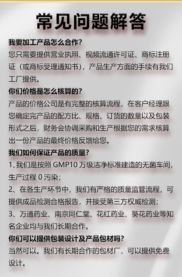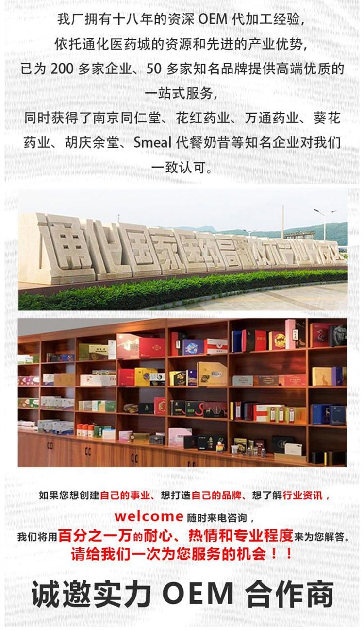 4.企业背书:我们申请了企业标准,是国内食品级鹿胎膏专业OEM代加工厂家,获得北京同仁堂、南京同仁堂等知名品牌的认可。诚心邀请您合作。