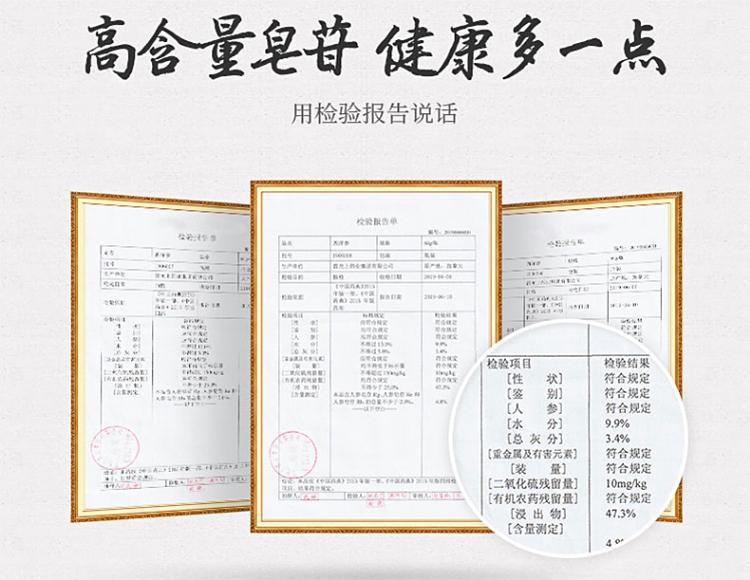 5、优选品质原料:选取长白山原产地优质西洋参、参味浓郁、皂苷含量高、营养价值更高、体验效果更佳。