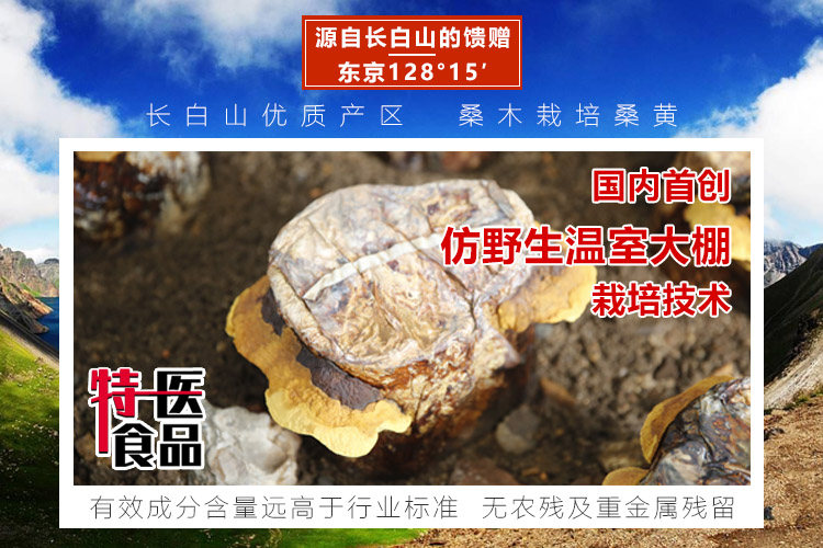 2.原料优质:地处长白山脚下,含有人体xi缺的21种微量元素,对于各类身体问题都有很好的调理作用,产量大,拥有超过1000亩桑黄培育产业基地,品质好。