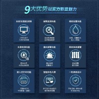 系统开机自动检测、缺水保护警报、停电自动复位、纯水桶满水后自动关机,超低压自动保护以及RO膜自动清洗功能。