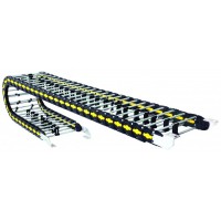 单元链节由左右链板和上下盖板组成,拖链每节都能打开,装拆方便,不必穿线,打开盖板后即可把电缆,油管气管等放入拖链内。