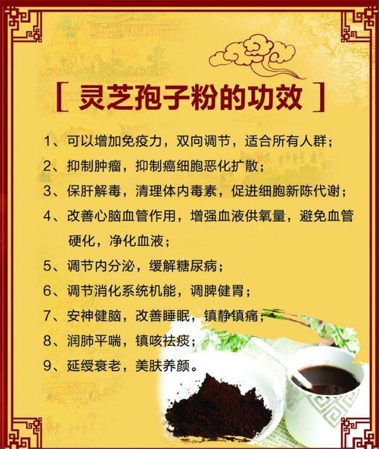 3、品质原料:采自长白山脚下抚松县纯正原料,道地灵芝孢子粉,灵芝孢子油含量更高