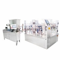 全自动自立预制袋异形袋包装机 辣椒油酱料液体八工位旋转给袋机