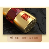 为国荣耀酒产于中国贵州,以本地糯高粱、小麦、水为原料,利用独特的自然环境,为国酱酒传承古典酱香酒酿造工艺,配置传统秘方,经人工踩曲、高温制曲,储存老熟,让酒香丰富醇厚,曲香味更胜一筹,口感细腻绵柔,回味悠长。