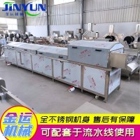 2、该机采用SUS304不锈钢网带,网带强度高、伸缩性小、不易变形、易保养等特点,整机运行平衡、噪音低,提高了工作效率。 3、本机加热源为蒸汽加热,带有自动控制进汽装置,大程度减少能源浪费。 4、本机传动系统采用调速减速电机,使输送带传送速度可调,杀菌工艺具有“随意性”。 |