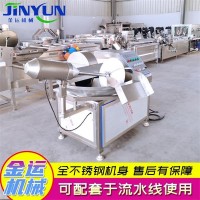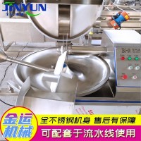 斩拌机利用站到高速旋转的斩切作用,将肉块,碎肉,脂肪等主要原料精细的斩切成肉馅或肉泥,同时将其他原料如水,冰片,辅料一起搅拌均匀。斩拌机的刀速、锅速、斩刀与斩锅的间隙达到合理的组合,从而减少物料发热量,细度好,大大的提高了肉制品的乳化效果。