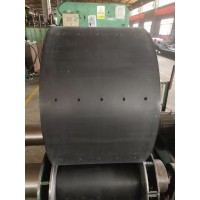 采用特殊加强耐撕裂聚酯帆布,或用钢丝防撕裂层.使用性能好,运行可靠,维修少等优点.钢丝绳输送带的特征主要包括:按结构分:普通型和抗冲击、抗撕裂型。 按用途分:除普通型外,还有耐磨、耐热、耐寒、耐酸碱、阻燃、防撕裂、难燃、耐臭氧等类型。 品种:按覆盖胶性能可分为:普通型钢丝绳芯输送带,阻燃型钢丝绳芯输送带 ,耐热型钢丝绳芯输送带,耐磨型钢丝绳芯输送带,耐寒型钢丝绳芯输送带,耐酸碱型钢丝绳芯输送带,耐油型钢丝绳芯输送带,阻燃型钢丝绳芯输送带等品种。 特点:拉伸强度大,抗冲击好,寿命长,使用伸长小,成槽性好,耐曲挠性好适于长距离,大运程,高速度输送 物料。该产品是由芯胶,钢丝绳,覆盖层和边胶构成。 用途:广泛用于煤炭,矿山,港口冶金,电力,化工等领域输送物料。