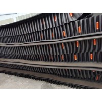 大倾角输送机皮带, 是由基带、挡边、横隔板3部分组成。挡边起防止物料测滑撒落的作用。为便于绕过滚筒,档边设计成波纹状;横隔板的作用是承托物料,为了实现大倾角输送,采用T型TC型。档边和横隔板是用二次硫化的方法与基带连接的,具有很高的连接强度。用于输送易散落的粉状、粒状、小块状、糊状及液态状物料。其特点:适用于倾角0°~90°散装物料的输送;具有使用范围广、占地面积小、无转运点、减少土建投资、维护费用低、维修容易输送量大连续化、高效率、大倾角运输,操作安全,使用简便,,运费低廉,并能缩短运输距离,降低工程造价,节省人力物力等特点;解决了普通带和花纹带所不能达到的输送角度;还可根据使用环境,设计成完整、独立的输送系统,避免了间断输送和复杂输送的提升系统。可沿水平、倾斜、垂直和变角方向输送各种散装物料,从煤、矿石、沙子到化肥和粮食等。物料粒度不限,可从很小的粒度到400mm的大粒度,输送量可从1立方米/小时到6000立方米/小时。
