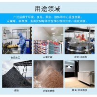 采用高精度的模数转换电路,及低温飘器件,传感器采用探针式不锈钢高温探头,适用性强,反应时间短,浏览量精度高,使用寿命长,广泛适用于果品、食品、液体、半固态、粉末状物内部,蒸煮锅、搅拌灌、粮草堆、发酵堆、煤堆等大型堆积物内部温度测量,探头长短粗细及引线长度均可定制!