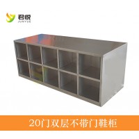 立式带门鞋柜:(1)板采用304材质1.0mm(实厚0.86mm±0.02)厚度不锈钢板制作(2)带门,采用普通暗锁,带通风口及标签口(3)尺寸1200*400*1950,可放24双鞋。