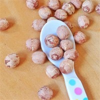 铁莲子经过加工,剥除坚硬的外壳,得到里面的莲肉,这种莲肉被一层褐红色的表皮包裹,所以称红莲子。