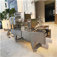 基本功能:多孔单排铝合金耐酸铝模具。(可根据用户需求设计新型机) 自动落杯-自动两次灌装(生米,糖水)-紫外线杀菌灯管-自动封口两次--自动切膜 -出杯