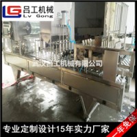 可适用于塑料杯、塑料盒自动灌装封口,并且可以自动清洗杯子。