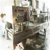 全自动操作,自动完成洗杯,落杯、自流灌装、紫外线杀菌、吸膜、放膜、封口、切边等。该机采用钢铁与304不锈钢制造,结构简单,操作容易。