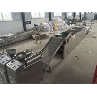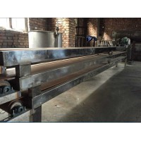 第一代粉条机械的研究,汝阳机械厂正式投入生产是在80年代,先后生产锤瓢机、和面机、抽空机,而后抽空机被推盆机代替。随着新的设备研究和生产,这些机器漫漫被淘汰。近两年对手工粉的需求市场越来越大这些设备采购量以及生产量逐步的增加。 生产工艺:红薯淀粉→打糊→合粉→抽气泡(推粉)→漏丝成型→沸水煮粉→冷却捞粉→切断上杆→冷却→冷冻→解冻干燥→包装→成品粉丝。其中生产种需要的主要设备有和面机、抽空机(推盆机)锤瓢机等主要机械。操作工人4-8人进行操作(设备配置越高占人越少),产量约每小时4.5百斤左右。一斤淀粉原料生产成品大概为7.8两左右(主要看淀粉质量,质量高的可出到9两左右)。主要是在成熟和冷却时损失。手工生产传统来讲有句老话七紧八松,意思就是七个人有些吃力,八个人干活却很轻松,但随着近些年招工难,用人难的现状,设备也不断的更新自动化的生产。粉条加工使用商户增多,市场需求量的增大,近年来我们汝阳古城机械厂也在不断的根据现在使用者的情况和生产环节关键点的揣摩实验,针对农户小型生产和企业化生产大体上分成两大类设备,这两大类设备都是在尽量的减少人力,代替人力,在机械化的同时保证机械化生产出来的粉条和手工捶打相似或一致的外观、韧性及口感: